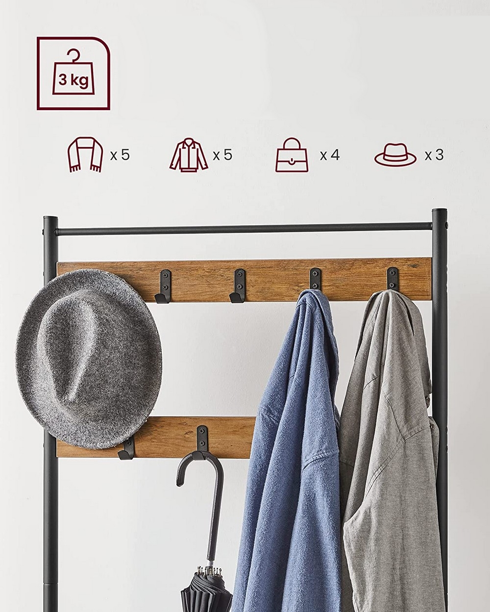 • Prineste do svojho domova šarm dreva a silu kovu s týmto štýlovým vešiakom v industriálnom dizajne.