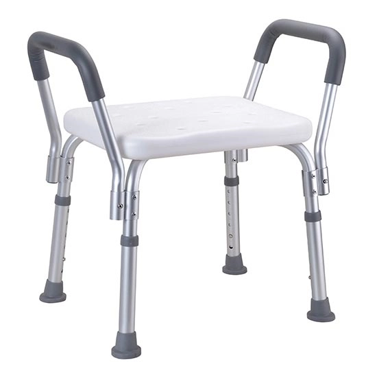 • Sprchová stolička s opierkami na ruky pre bezpečné a pohodlné sedenie.