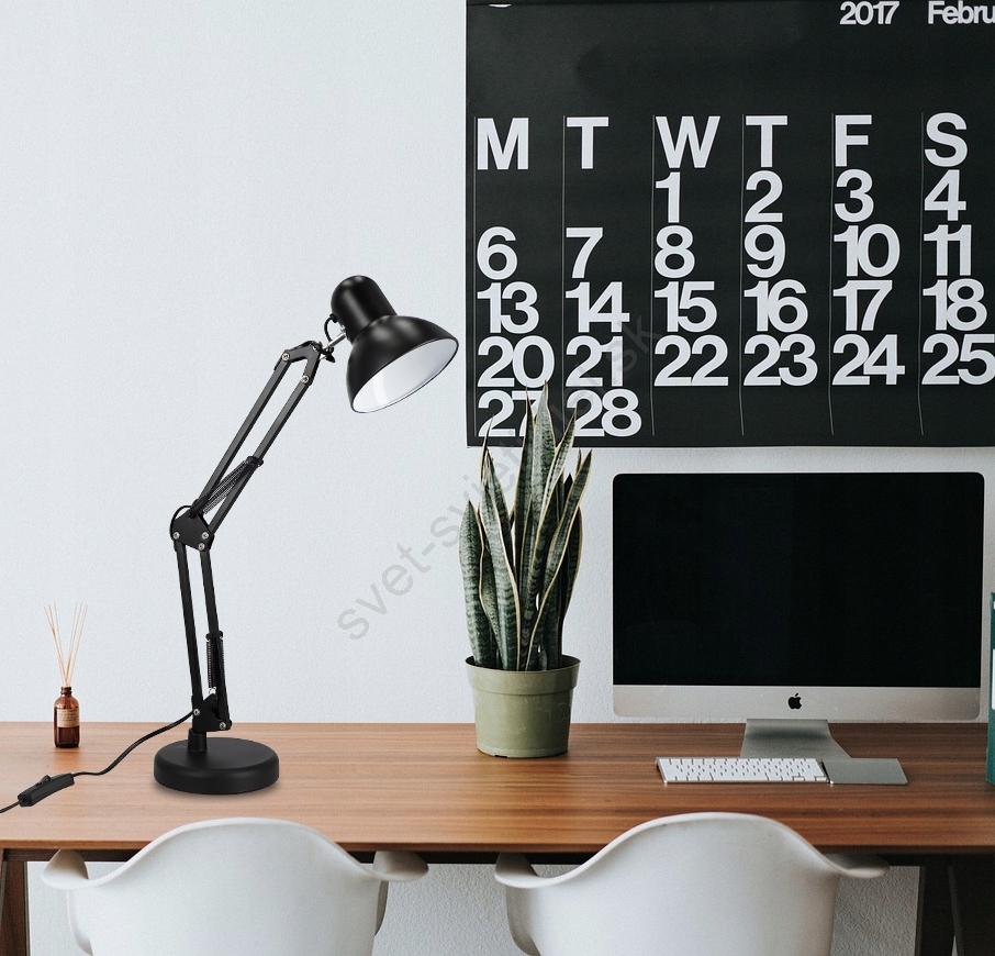 Stolná lampa 2 v 1 so svorkou, 1×E27/60W/230V, čierna