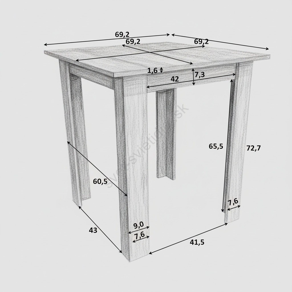 • Štvorcový jedálenský stôl LEVI dub sonoma