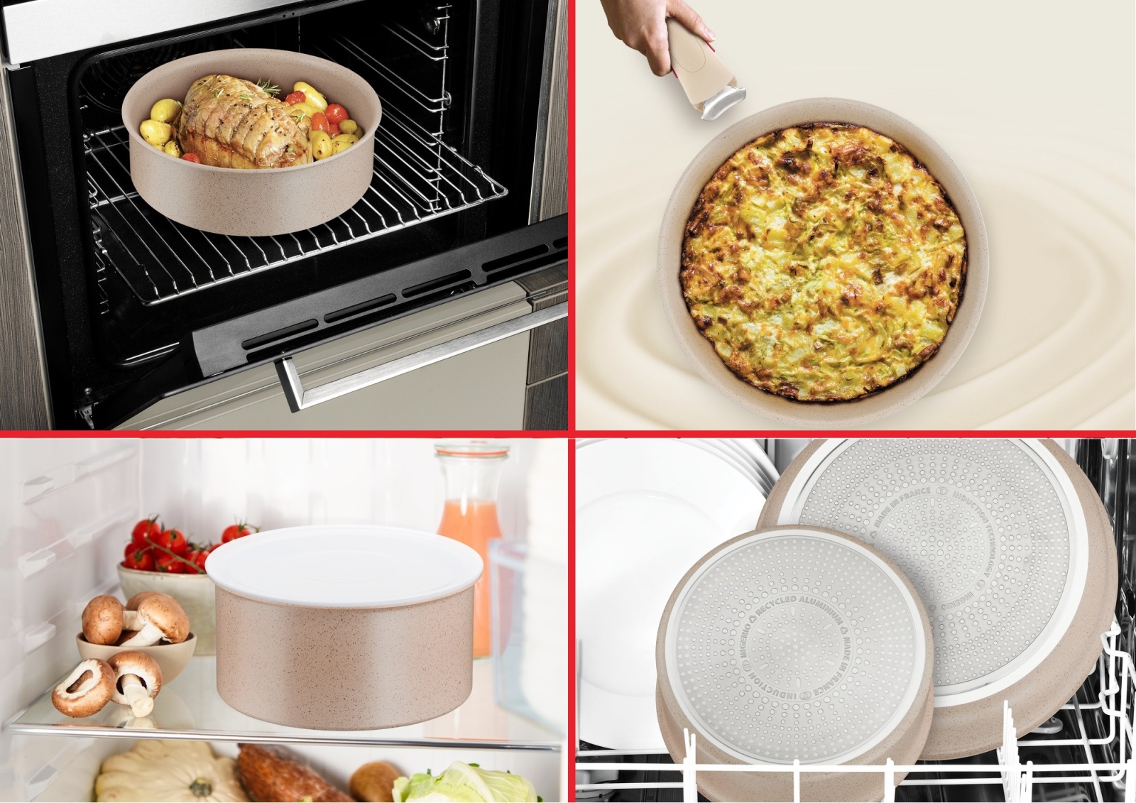 • Konstrukcia je navrhnutá s odnímateľnou rukoväťou, ktorá umožňuje efektívne skladovanie, používanie v rúre aj servírovanie bez rukoväte.