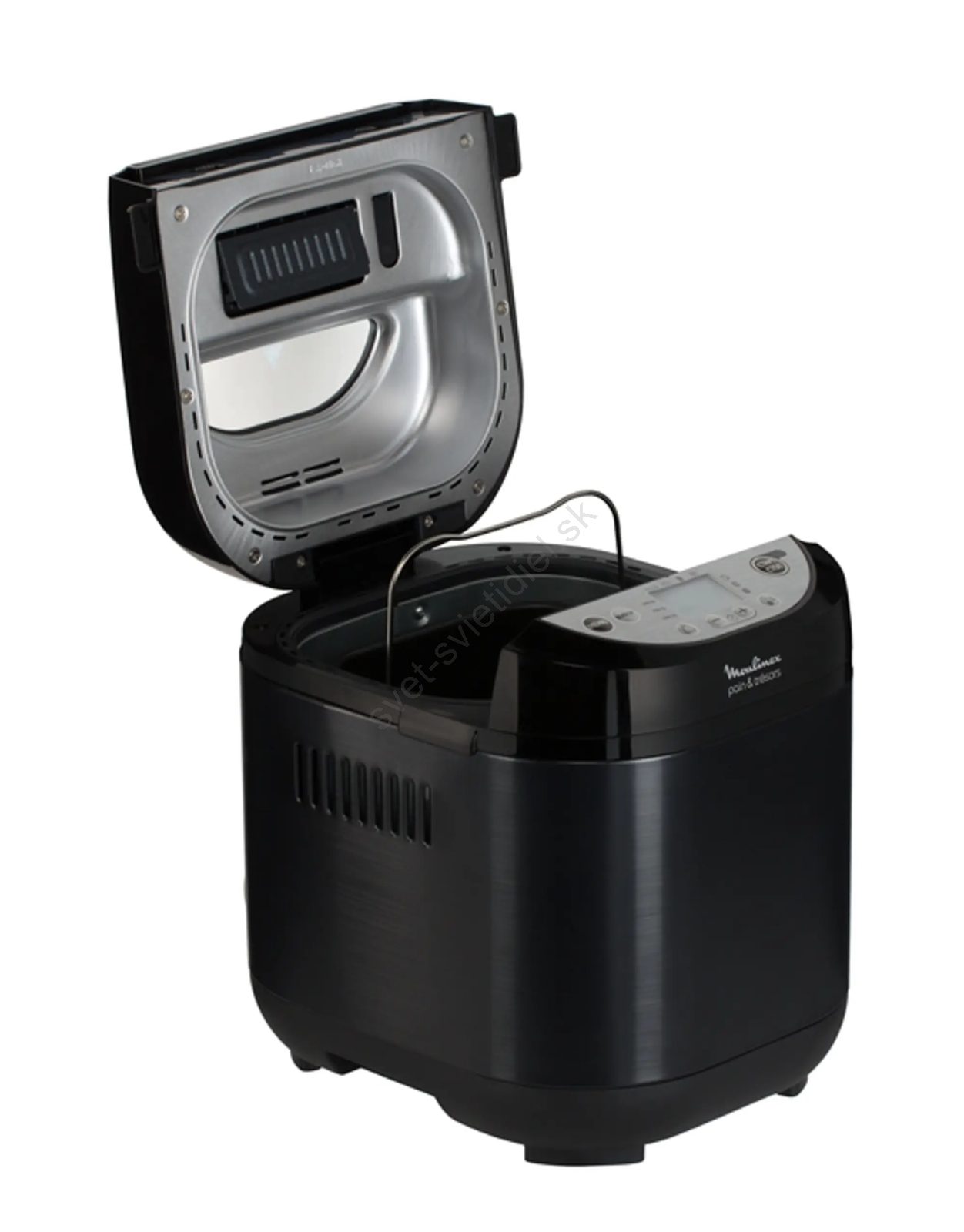 • Pekáreň má plastový povrch a nepriľnavú pečiacu nádobu s hnietacou lopatkou.