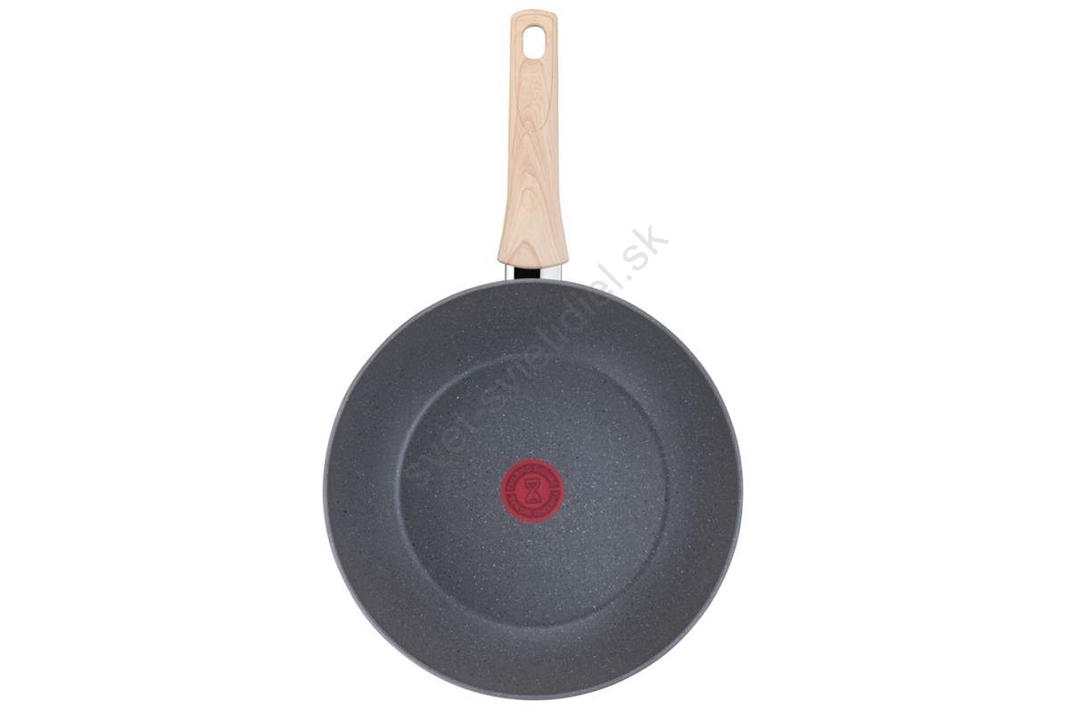 • Hlboká wok panvica Tefal Natural Force s mimoriadne odolným nepriľnavým povrchom Mineralia+ z prírodných minerálov s rukoväťou v imitácii dreva.