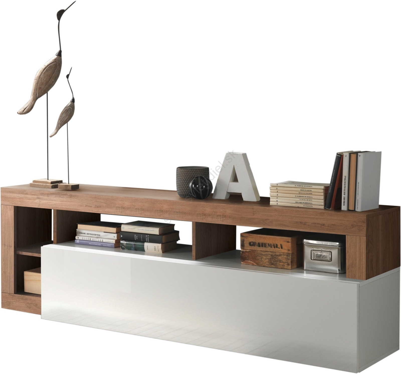 • Televízny stolík LENOR – biely/šedý s betónovým vzhľadom