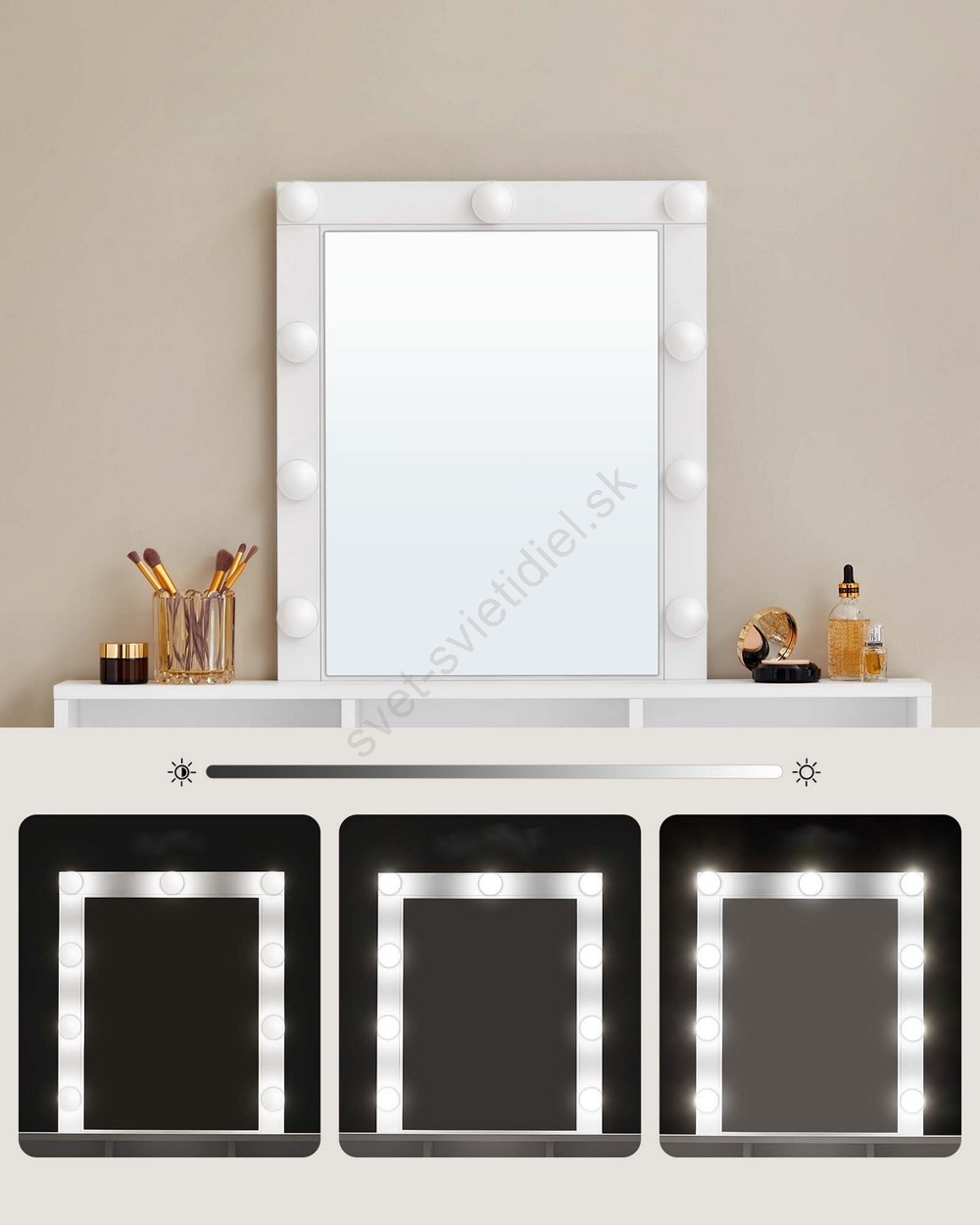• Disponuje 9 stlmiteľnými LED žiarovkami okolo zrkadla.
