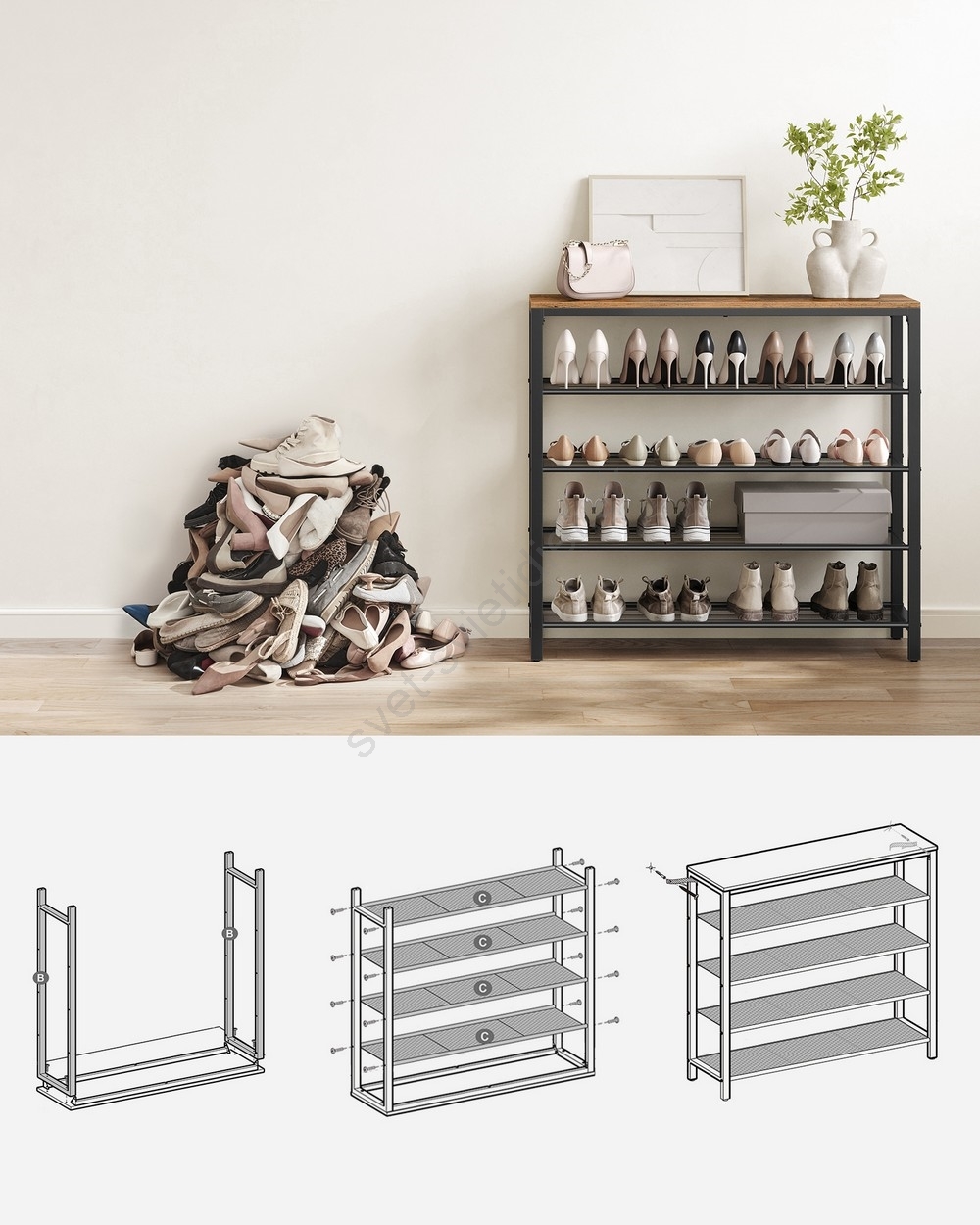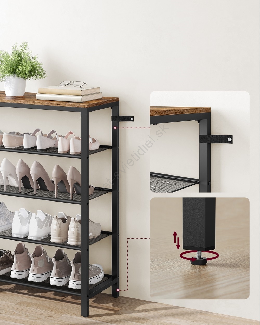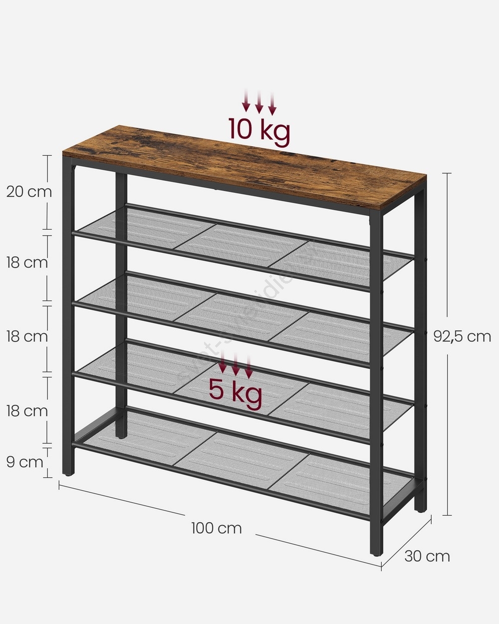 • S nosnosťou 10 kg na vrchnej ploche a maximálnou nosnosťou 5 kg na každú policu sa na tomto stojane bezpečne umiestnia všetky vaše topánky, tašky a dekorácie.