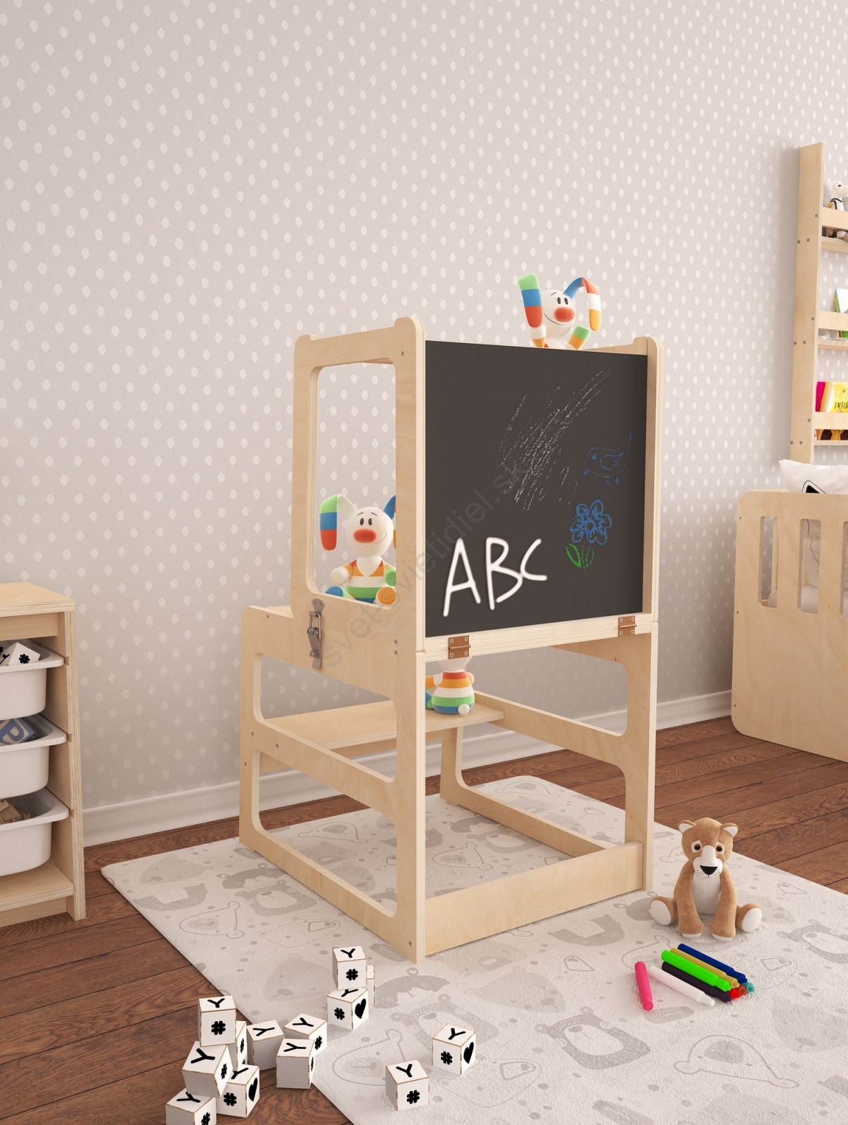 • Poskytuje stabilnú a pevnú oporu dieťaťu pri práci na kuchynskej linke alebo pri stole.