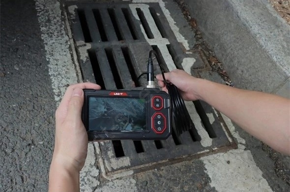 • Moderný veľkoplošný priemyselný boroskop určený na kontrolu motorov, potrubia, odtokov, vetracích kanálov či dutín v stenách budov.