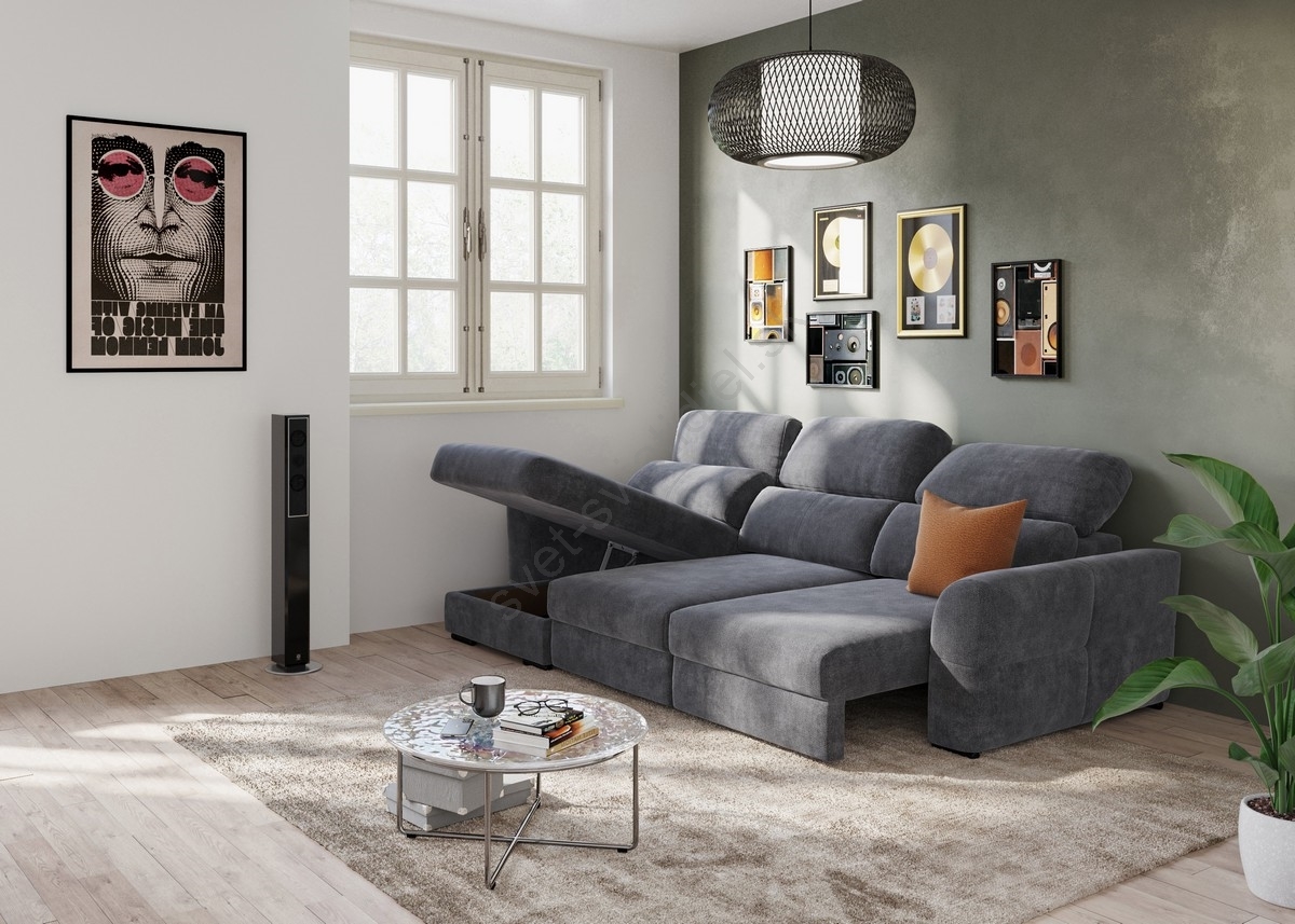 • Súčasťou modelu je aj úložný priestor, ktorý poskytuje praktické miesto na prikrývky, vankúše alebo ďalšie potreby.