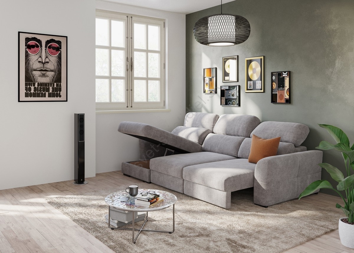 • Súčasťou modelu je aj úložný priestor, ktorý poskytuje praktické miesto na prikrývky, vankúše alebo ďalšie drobnosti.