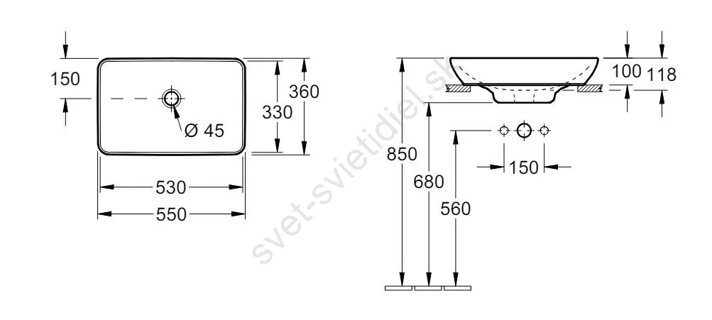 Villeroy & Boch 411355R1 - Umývadlo na dosku VENTICELLO 55,5x36 cm keramika/biela