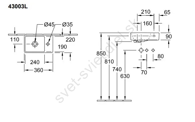 Villeroy & Boch 43003L01 - Závesné umývadlo AVENTO 36x22 cm keramika/biela
