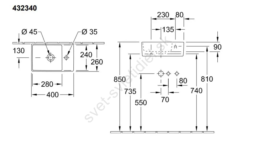 • Umývadlová batéria a výpusť nie sú súčasťou balenia.