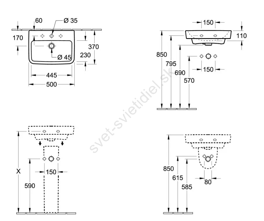 Villeroy & Boch 43445001 - Závesné umývadlo O.NOVO 50x37 cm keramika/biela