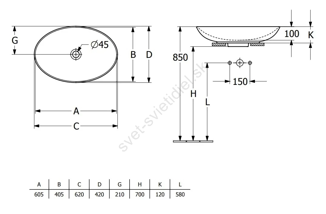 • Umývadlová batéria a odtok nie sú súčasťou balenia.