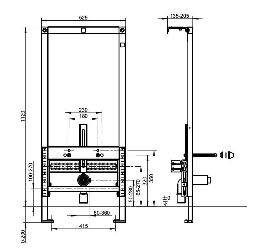 • Podomietkový inštalačný modul určený pre závesné bidety.