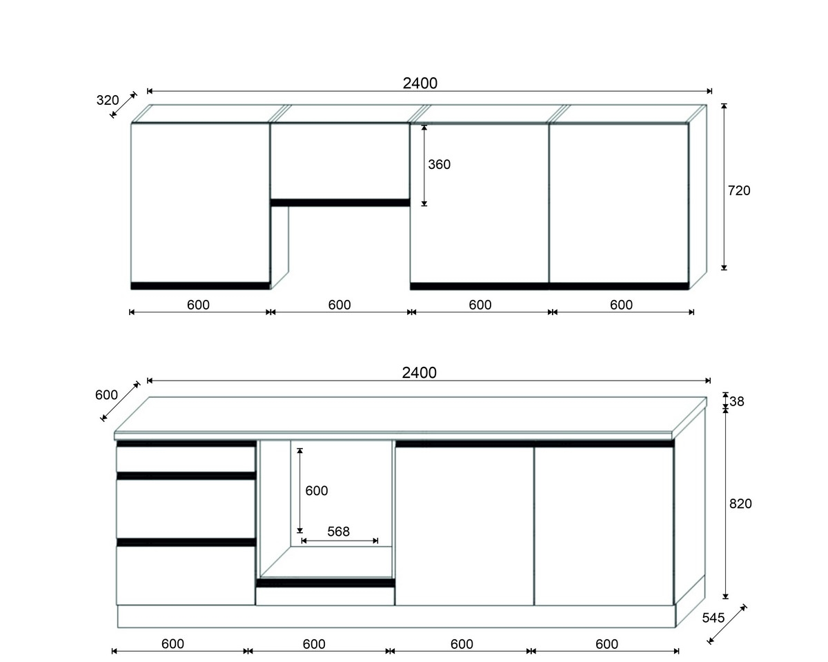 • Praktická kuchynská linka vám poskytne priestranný, prehľadne rozdelený úložný priestor a jednoliatu pracovnú dosku.