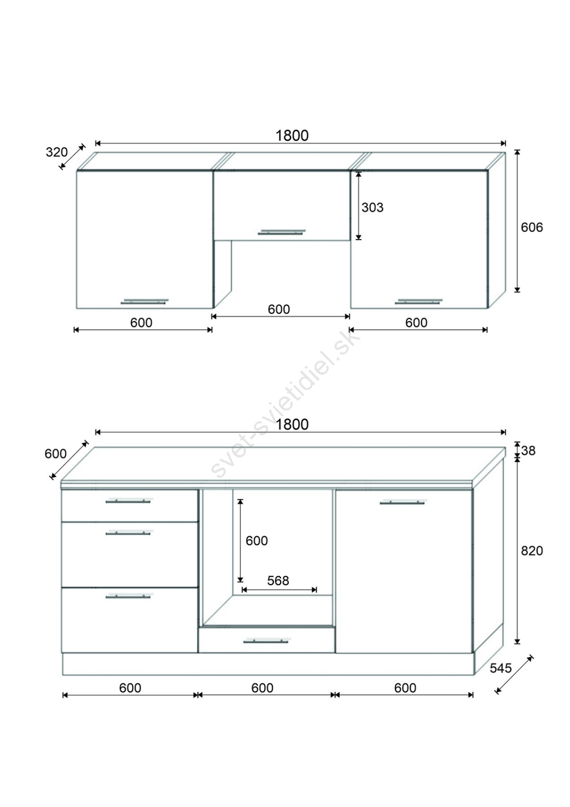 • Súčasťou nie sú elektrospotrebiče, kuchynský drez ani kuchynská batéria.