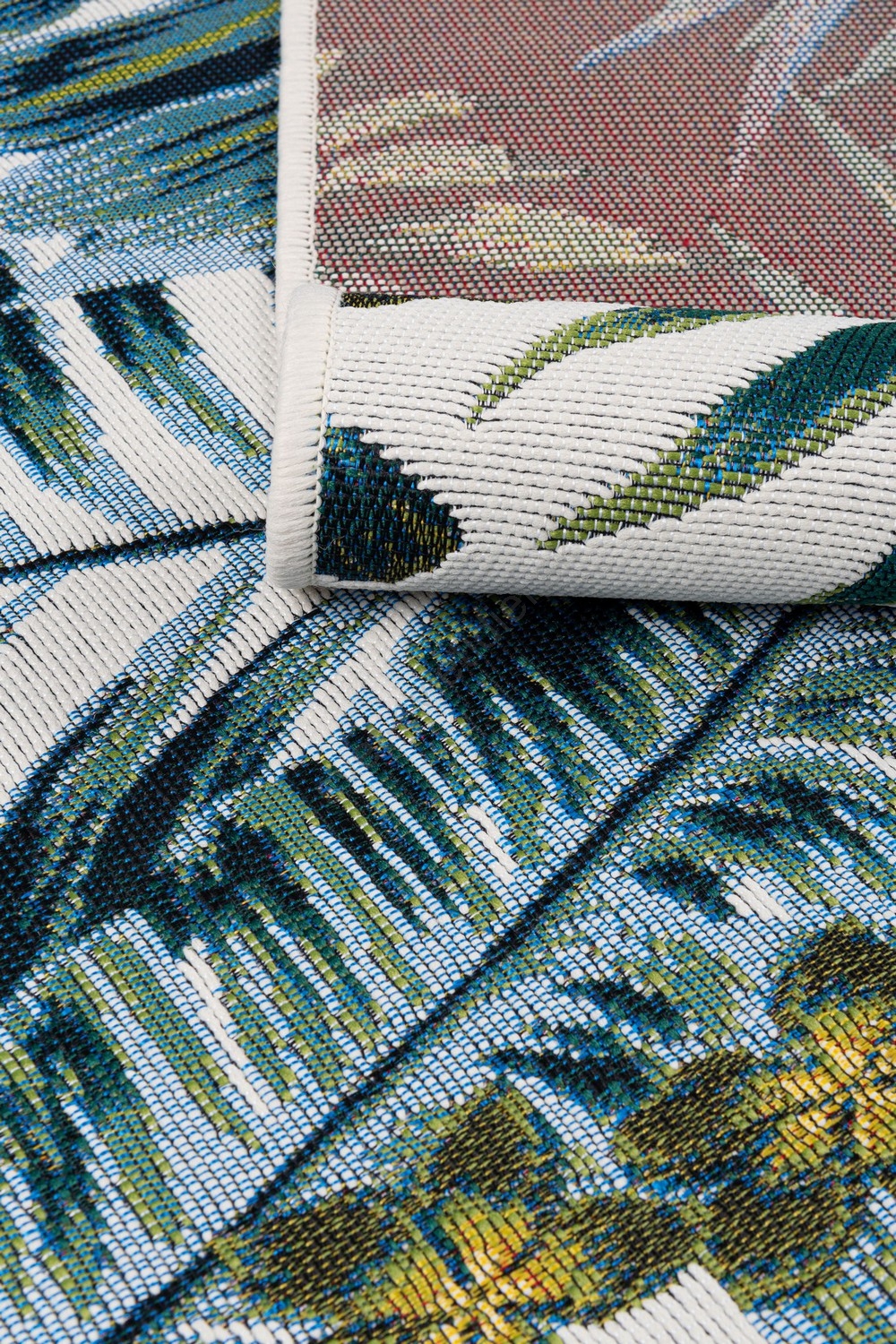 Vonkajší koberec CAPPUCCINO 80x165 cm tyrkysový/listový vzor