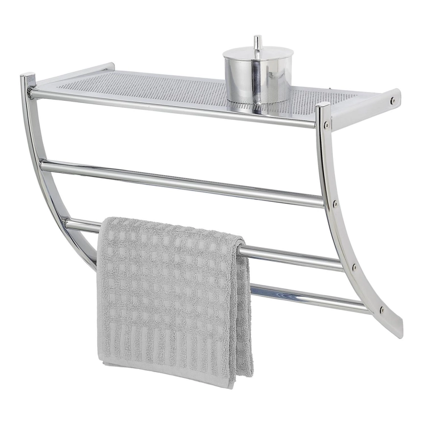 • Elegantný nástenný držiak na uteráky s tromi ramenami a policou.