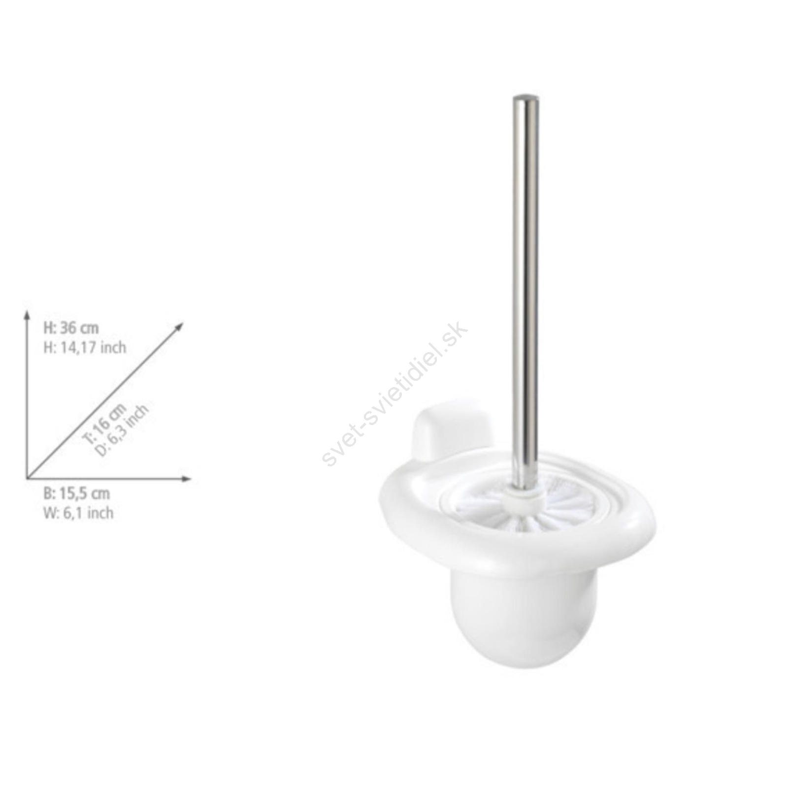 • Súčasťou je WC kefa s vymeniteľnou bielou hlavicou (Ø 8,5 cm).