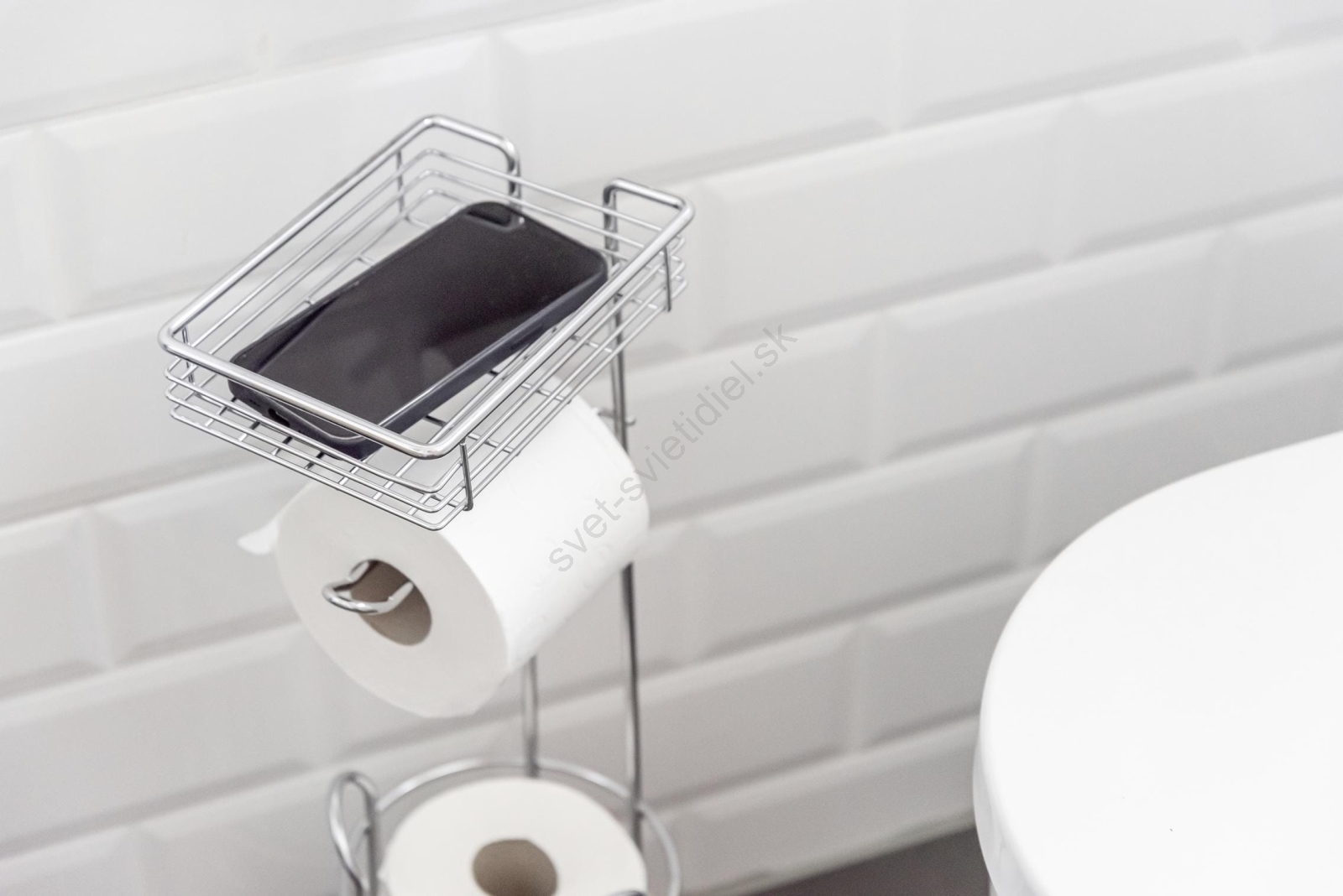 • Praktický 3v1 držiak na toaletný papier s priehradkou.
