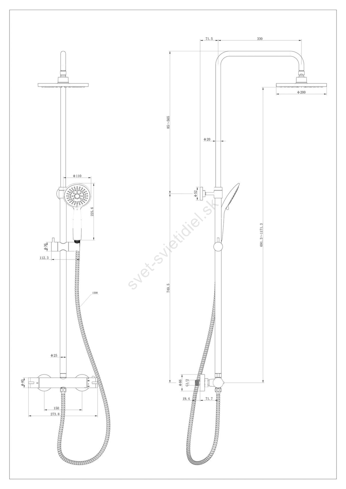 • Robustná nerezová sprchová tyč nastaviteľná v rozmedzí 75–120 cm.