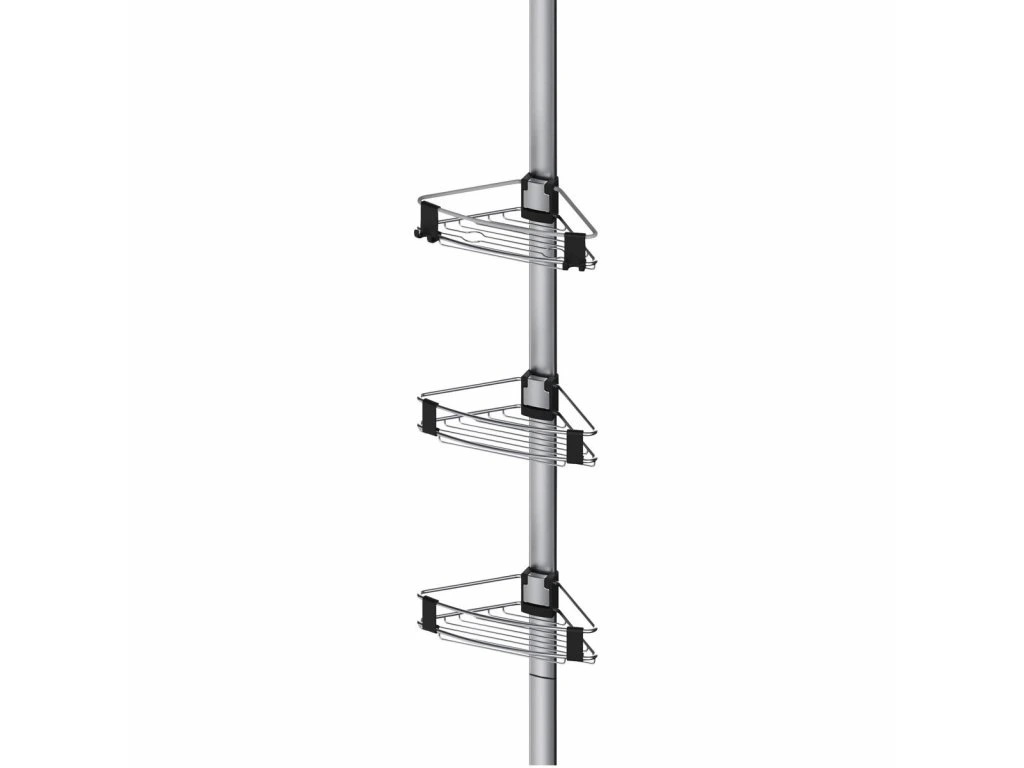 • Teleskopická rohová polica bez nutnosti vŕtania – jednoduchá montáž do kúpeľne.