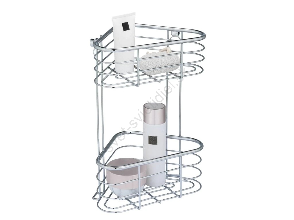 • Praktická rohová polička s dvoma extra hlbokými košíkmi na sprchové gély a šampóny.