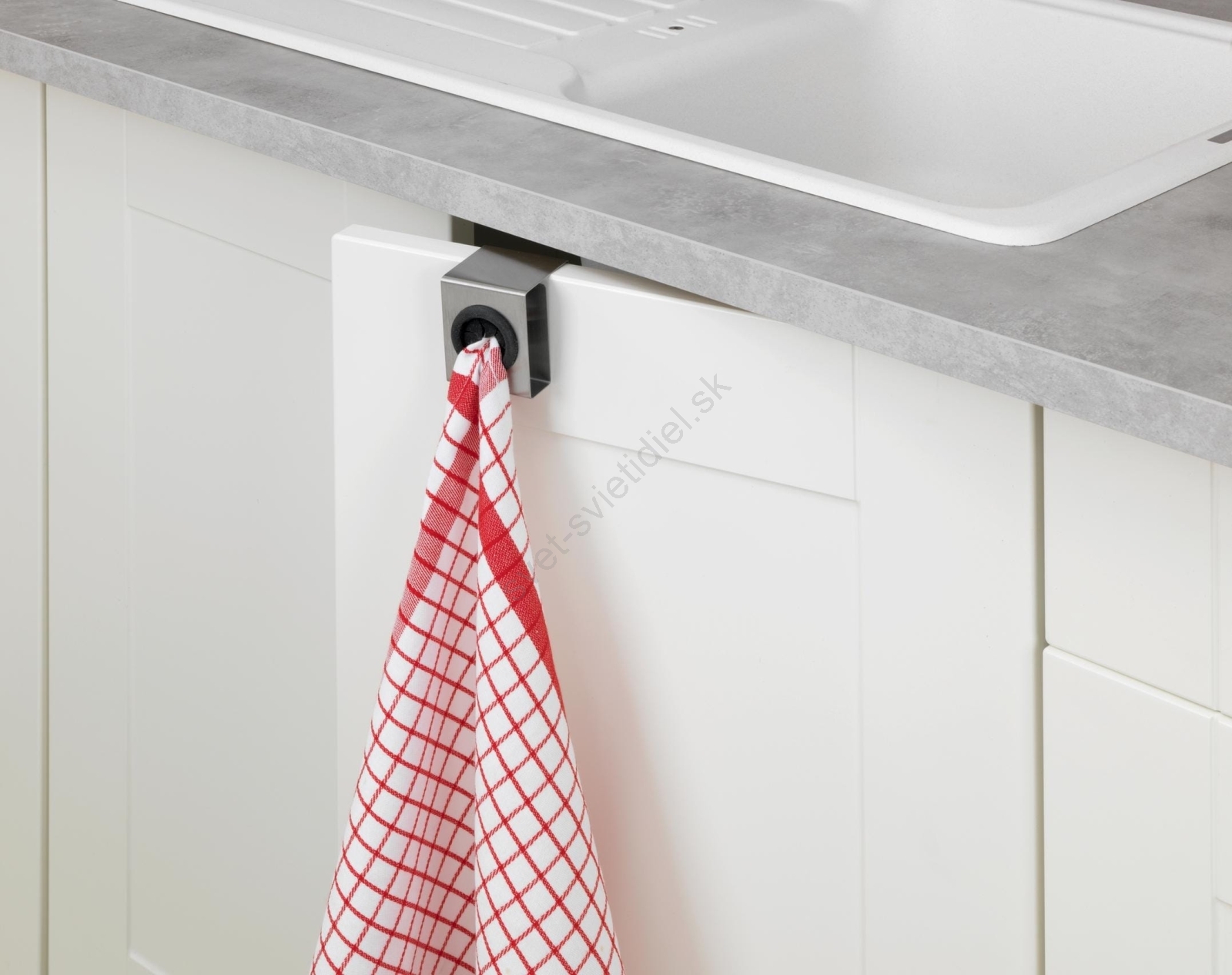 • Praktický háčik na zavesenie na dvierka kuchynských skríň a dverí.