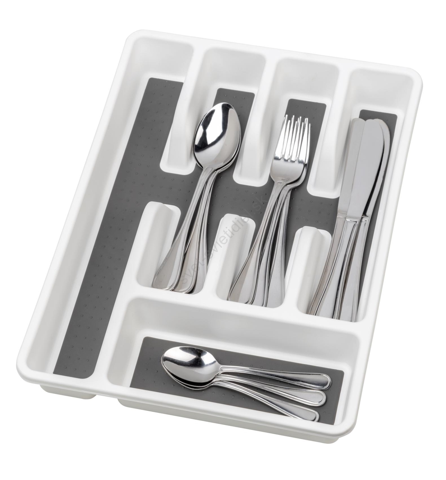 • Protišmyková úprava vo všetkých priehradkách zabezpečuje stabilné uloženie príborov.