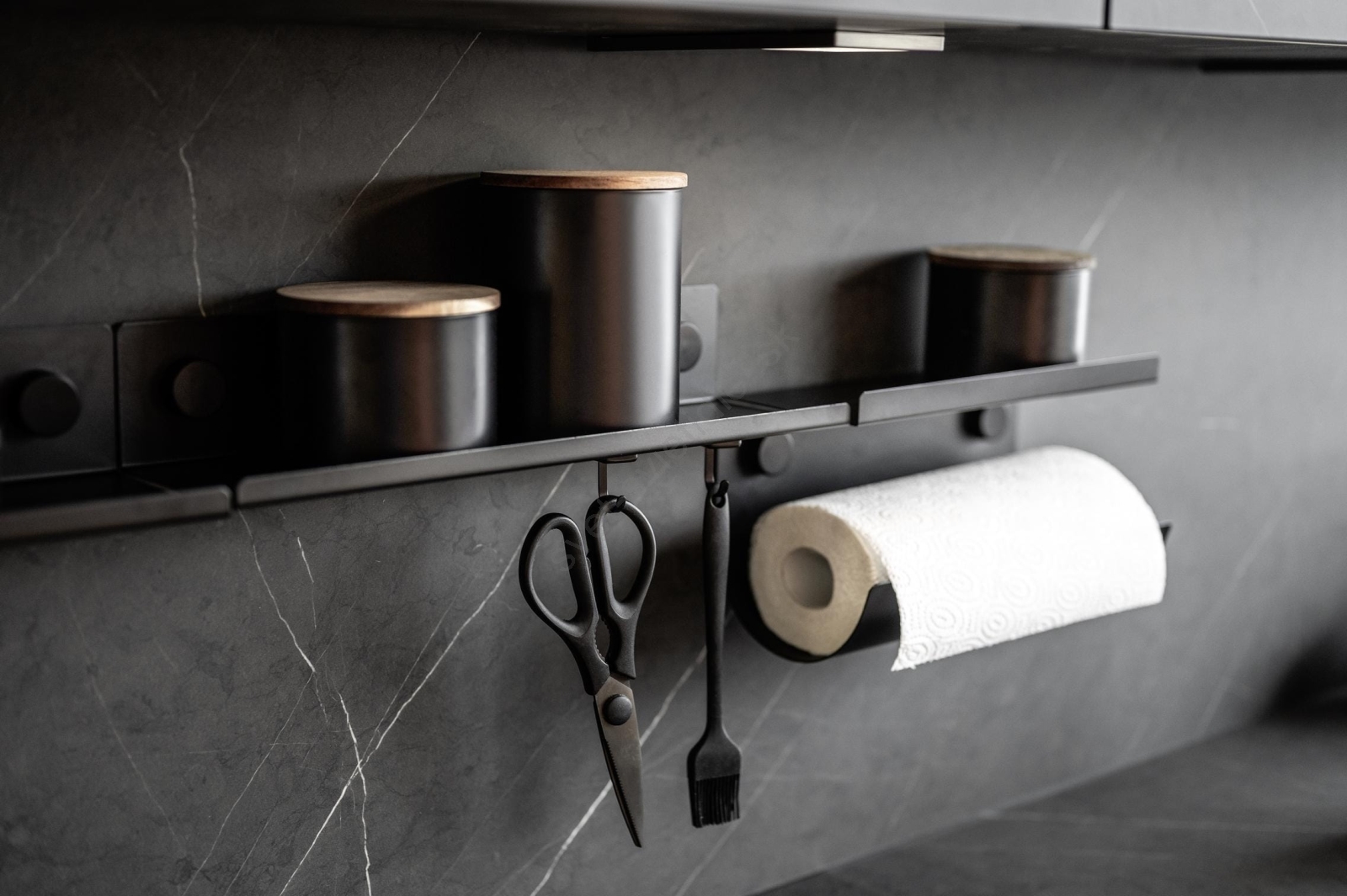 • Elegantný držiak na kuchynské utierky z radu WENKO Jet v modernom čiernom dizajne.