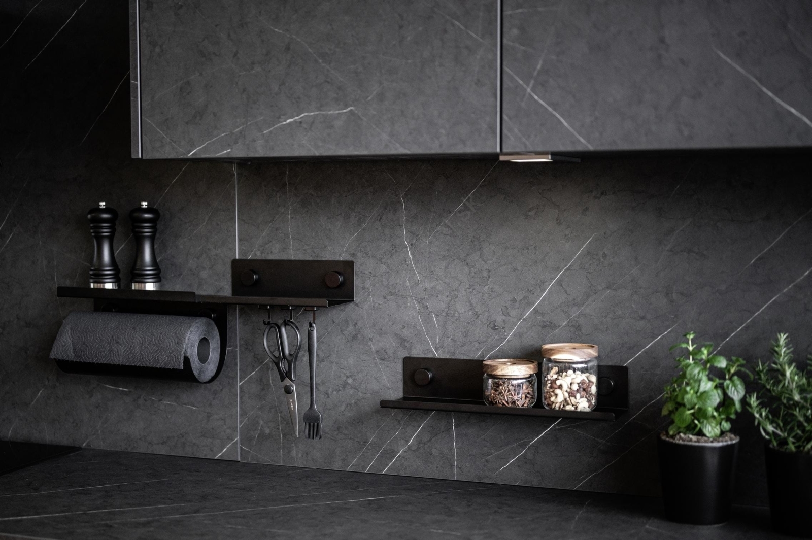 • Čierne prevedenie ladí s moderným industriálnym štýlom kuchyne.