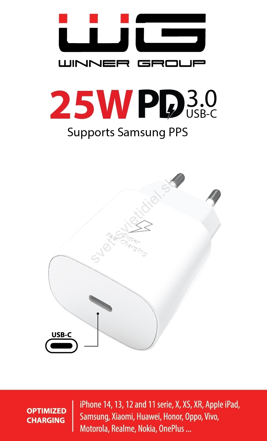 Winner Group - Rýchlonabíjací adaptér 1xUSB-C Power Delivery 25W biely