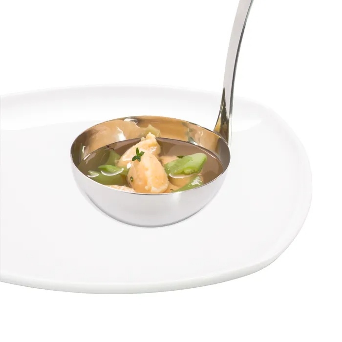 • Premyslený tvar umožňuje presné dávkovanie polievok, omáčok či gulášov bez kvapkania.