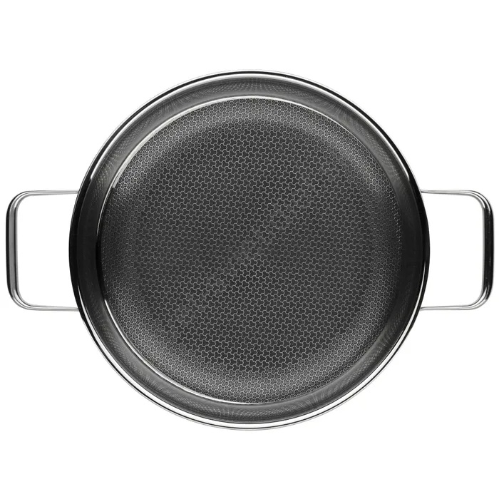 • Rukoväť s redukciou tepla: Dutá rukoväť znižuje prenos tepla z panvice (pri používaní na varnej doske), vďaka čomu zostáva chladnejšia na dotyk.