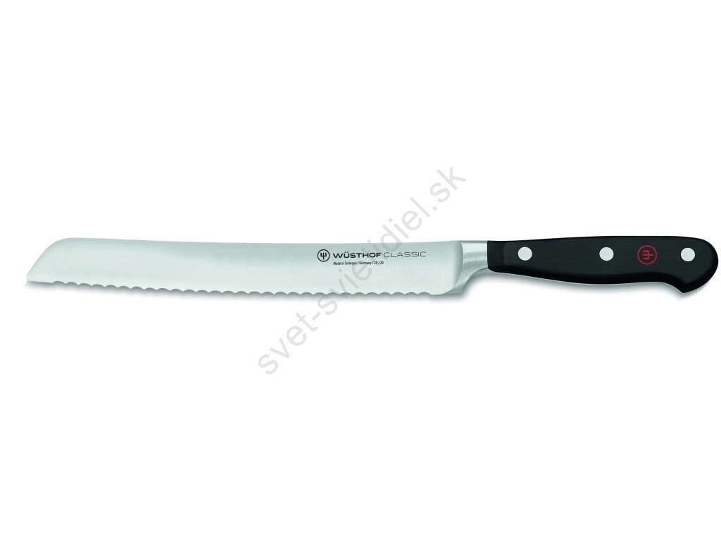 • Sada obsahuje: nôž na zeleninu (8 cm), nôž na lúpanie (10 cm), univerzálny kuchynský nôž (20 cm) a nôž na chlieb (20 cm) s vlnkovaným ostrím.