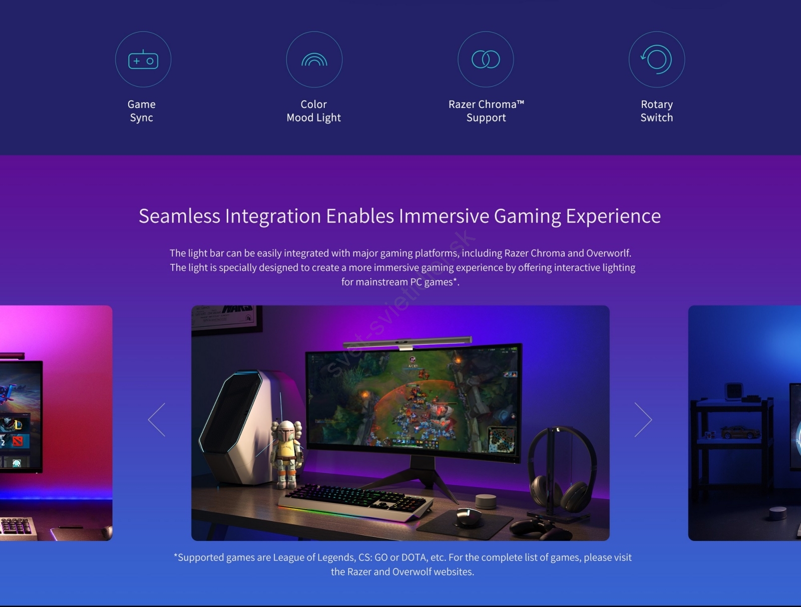 • Svietidlo je možné integrovať do systémov Razer Chroma alebo Overwolf na vytvorenie dokonalého herného brlohu.