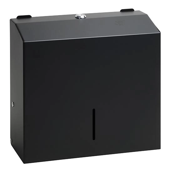 • Moderný čierny zásobník na papierové uteráky pre elegantný vzhľad kúpeľne.