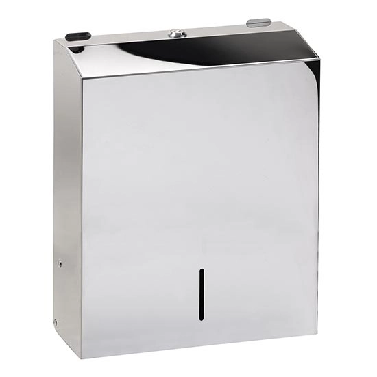 • Moderný zásobník na papierové uteráky z nerezovej ocele s lesklou povrchovou úpravou.