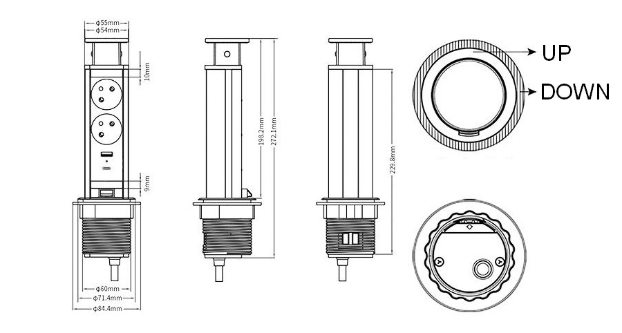 • Prípojkový stĺpik (2× zásuvky a 2× USB) vhodný pre pracovné dosky, stoly, ale aj kuchyne a nábytok - jednoducho tam, kde potrebujete elektrické zásuvky.