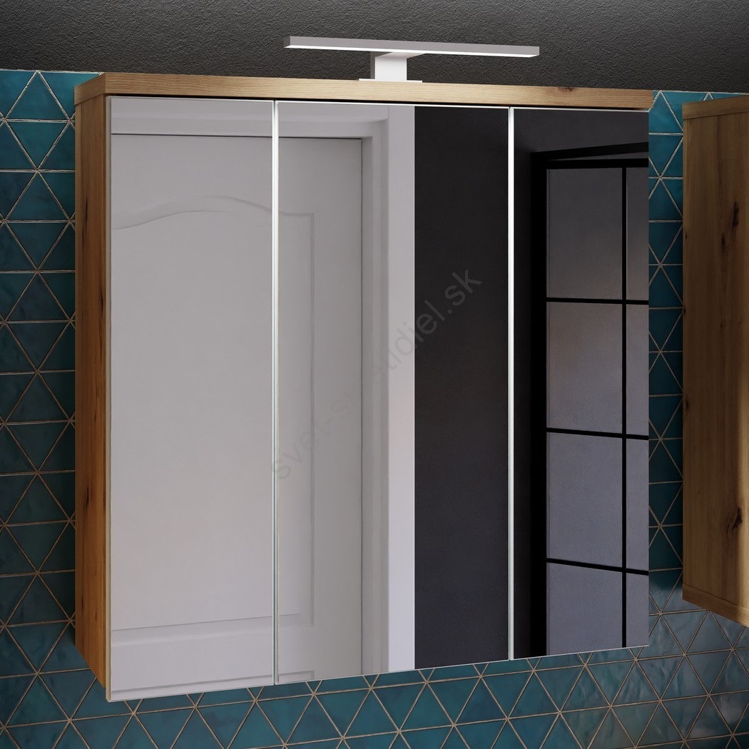 • Nástenná kúpeľňová skrinka so zrkadlom VENOM biela/dub artisan