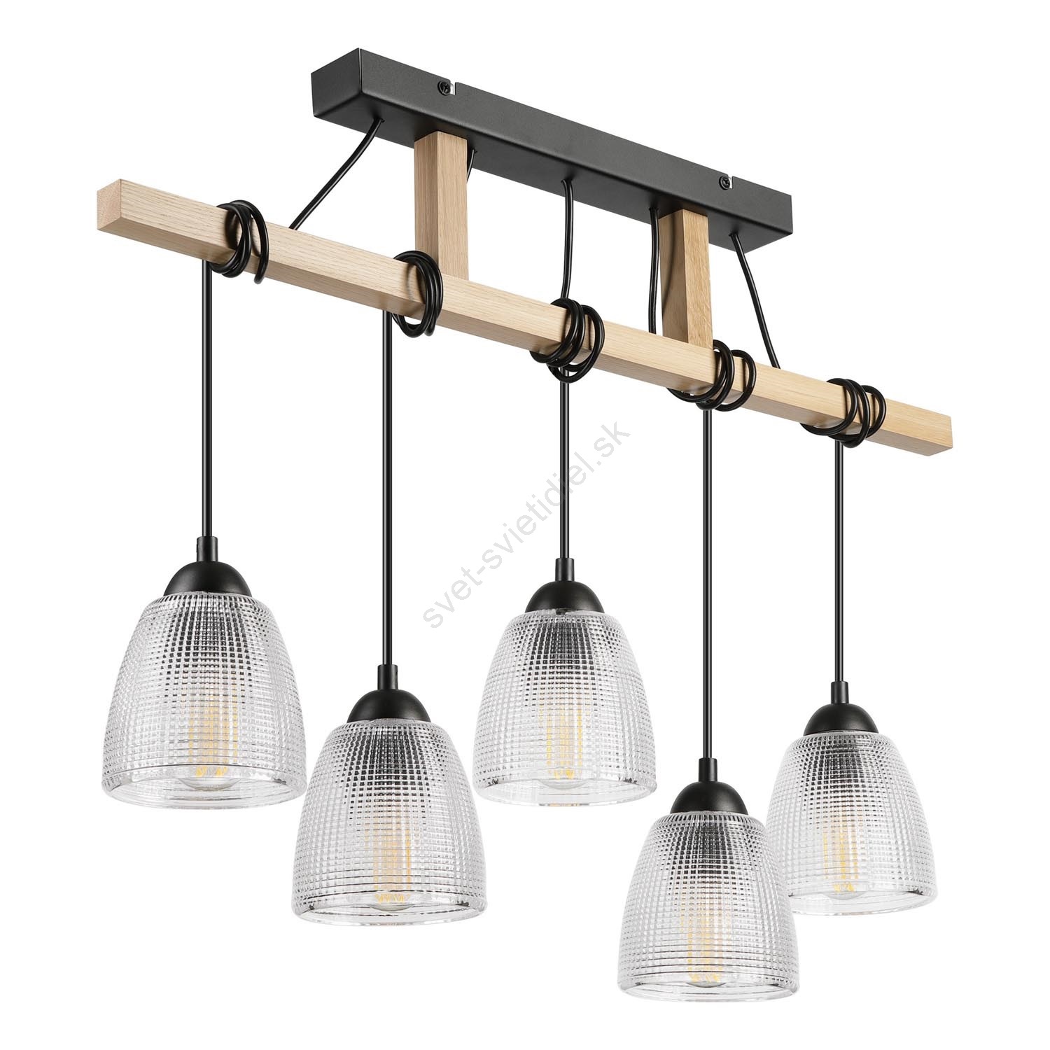 Závesný luster na lanku LEANDRA 5xE27/15W/230V dub/čierna