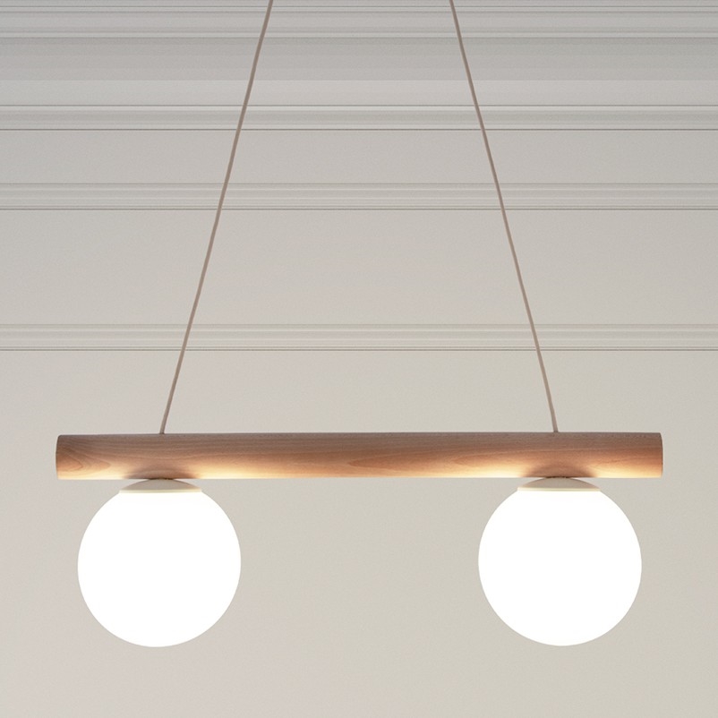 Závesný luster na lanku WOODSTOCK 2xE27/15W/230V drevený/krémový