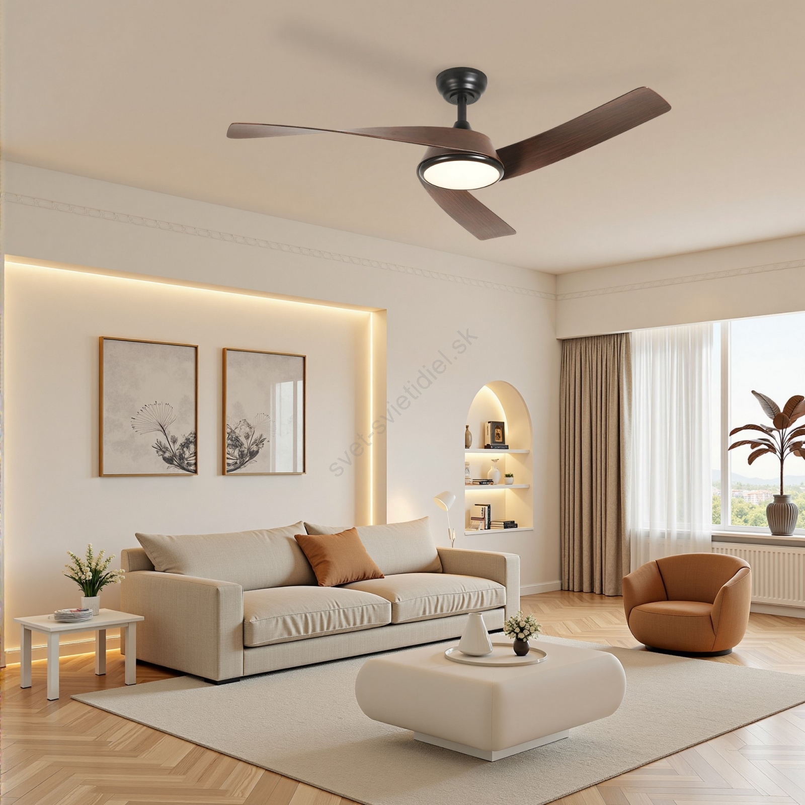 • Stropný ventilátor s LED osvetlením osvieži miestnosť počas horúcich letných dní.