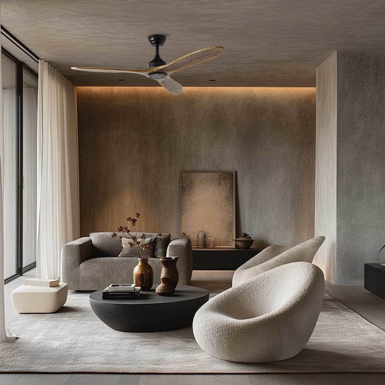 ZEVENTI - Stropný ventilátor LAURIA Wi-Fi Tuya čierna/dub + diaľkové ovládanie
